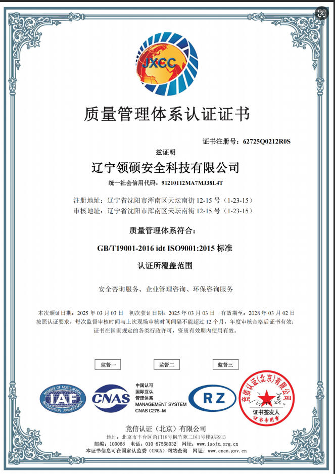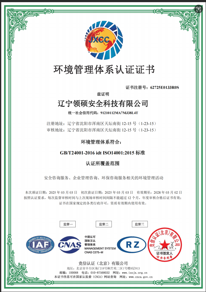 遼寧領(lǐng)碩安全科技有限公司位于遼寧省沈陽(yáng)市渾南區(qū)天壇南街12-15號(hào),注冊(cè)資金300萬(wàn)。主要經(jīng)營(yíng)范圍為遼寧省范圍內(nèi)的安全環(huán)保咨詢(xún),生產(chǎn)安全事故應(yīng)急預(yù)案技術(shù)服務(wù)、企業(yè)雙重預(yù)防機(jī)制建立、履職能力評(píng)估、企業(yè)科研項(xiàng)目安全部分服務(wù)等的技術(shù)服務(wù)機(jī)構(gòu)。現(xiàn)有員工12人,其中包括5名遼寧省級(jí)安全生產(chǎn)專(zhuān)家。成立于2022年4月18日,在盤(pán)錦市成立至今已經(jīng)為30余家企業(yè)提供了安全環(huán)保技術(shù)咨詢(xún)。 業(yè)務(wù)范圍包括:技術(shù)服務(wù)、技術(shù)開(kāi)發(fā)、技術(shù)咨詢(xún)、技術(shù)交流、技術(shù)轉(zhuǎn)讓、技術(shù)推廣,安全咨詢(xún)服務(wù),環(huán)保咨詢(xún)服務(wù),標(biāo)準(zhǔn)化服務(wù),企業(yè)管理咨詢(xún),科技中介服務(wù),工程管理服務(wù),特種作業(yè)...查看更多